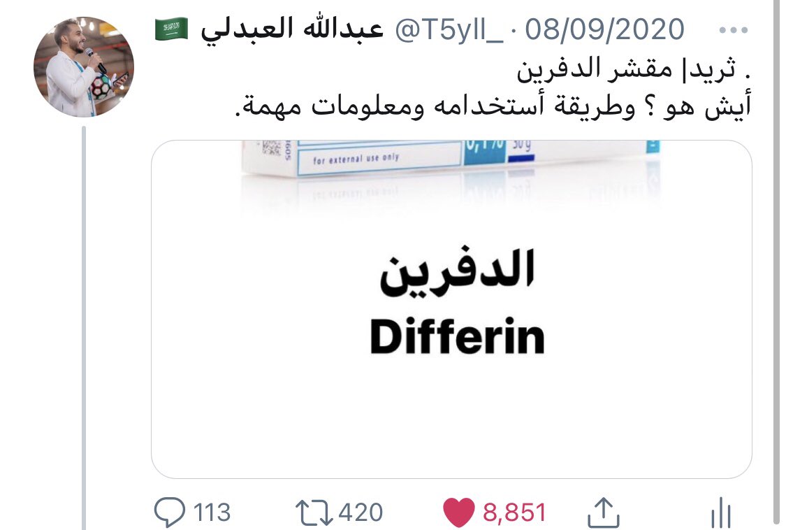 ١- أدابالين: دواء مُشابه من الناحية الكيمائية لفيتامين أ. يوجد بتركيز 0.1%
