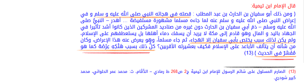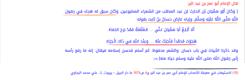 والمعنى الحاصل مِن هذه الرواية أنَّ أبا سُفيانَ رضي الله عنه قبل إسلامه قام بهجاء الرسول صلى الله عليه وسلم, وأطلق لسانه فيه.
