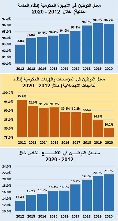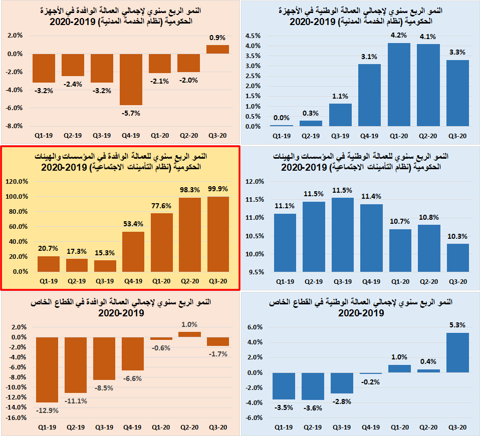 تقتضي هذه التطورات اللافتة للتوظيف في تلك المؤسسات الحكومية من وزارة الموارد البشرية، أن تتخذ أمامها سياسات توطين استثنائية وحازمة جداً، خاصةً والاقتصاد الوطني يواجه معدل بطالة مرتفع 14.9%.. والعمل بالتنسيق مع تلك المؤسسات على توطين وإحلال الوظائف بموارد سعودية خلال أسرع وقت!!