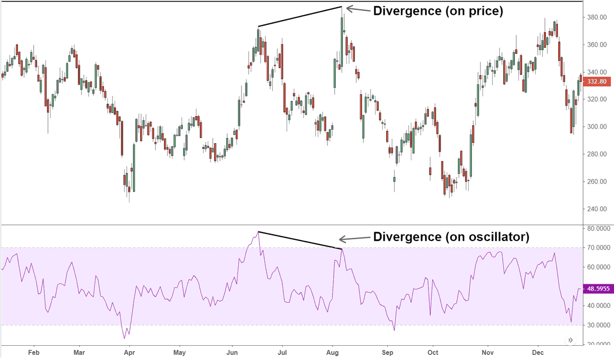 وهو يعني الاختلاف بين حركة السعر وأحد المؤشرات الفنية الخاصة بالتذبذب وسنعرف ما معنى في هذا الثريد💙