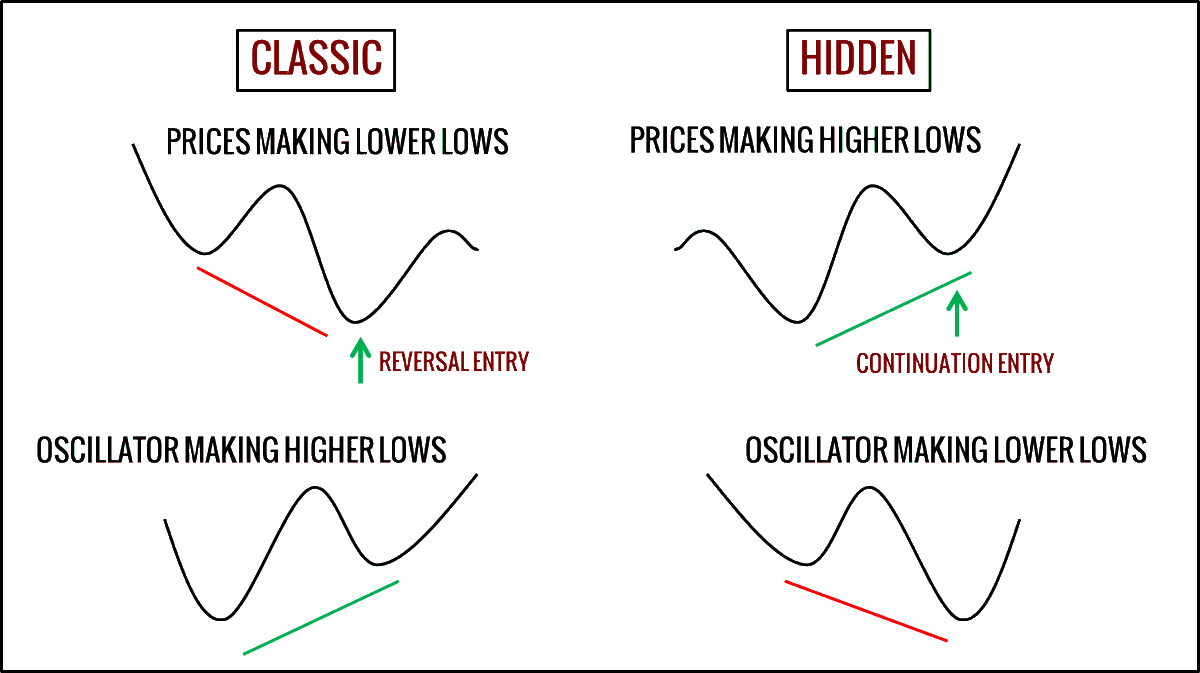 يستخرج الدايفرجنس من خلال مؤشرات الزخم (التذبذب) momentum indicators بصفة عامة، ويمكننا أن نوضح أهم المؤشرات في الآتي: