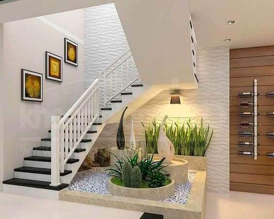 *يفضل أن يكون الدرج ملتصق بأحد الجدران على أحد الزوايا وليس في منتصف المنزل ... ليعطيك مساحة أكبر .