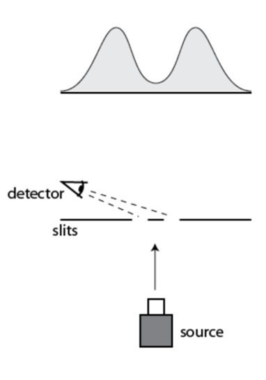 هذا النمط يظهر كما لو أنّ هذه الجسيمات قد تداخلت interfered مع بعضها أثناء مرورها بالشقين بسبب طبيعتها الموجية. وهذه نتيجة قد تُفهم باعتبار الجسيمات الكمية تتداخل مع بعضها.