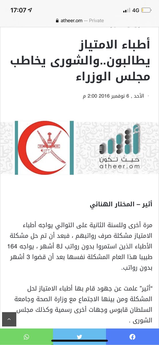 رفعت وزارة الصحة يدها عن أطباء الامتياز ونقلتهم ل "مكتب الامتياز" تابع لكلية الطب بجامعة السلطان قابوس وتم التنسيق مع وزارة المالية عشان يعطوهم مخصص شهري ٧٥٠ ريال مخالف لكل المراسيم والقرارات السابقة. 🥳