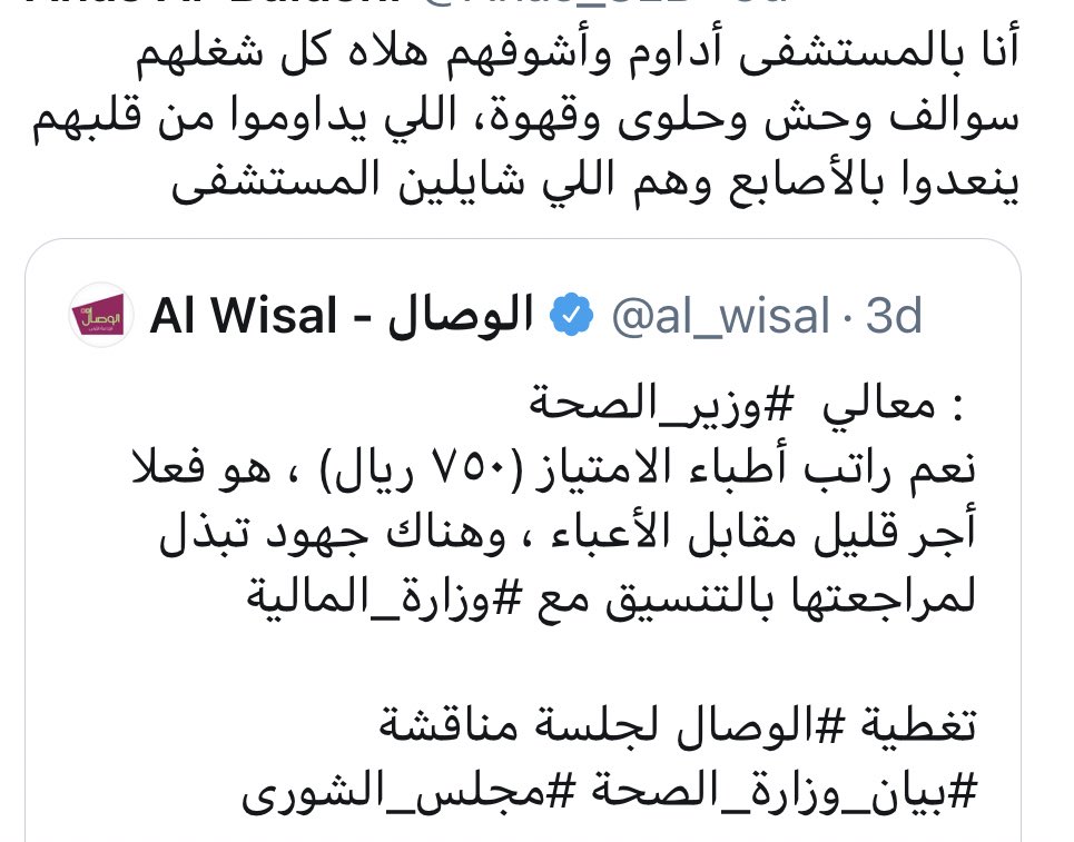 وبالحديث عن الـ٧٥٠ ريال هذه فإنها لم ترصد لحساباتنا هذا الشهر إلى الآن، لأنها مجرد مكافئة وليست راتبا (لقاء عقد عمل رسمي) فهي قابلة لإعادة الجدولة والتأجيل والدمج.☺️