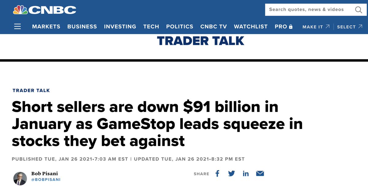 @RobinhoodApp Au mois de janvier, les vendeurs à découvert ont perdu 91 milliards de dollars et l'affaire #GameStop a joué un grand rôle