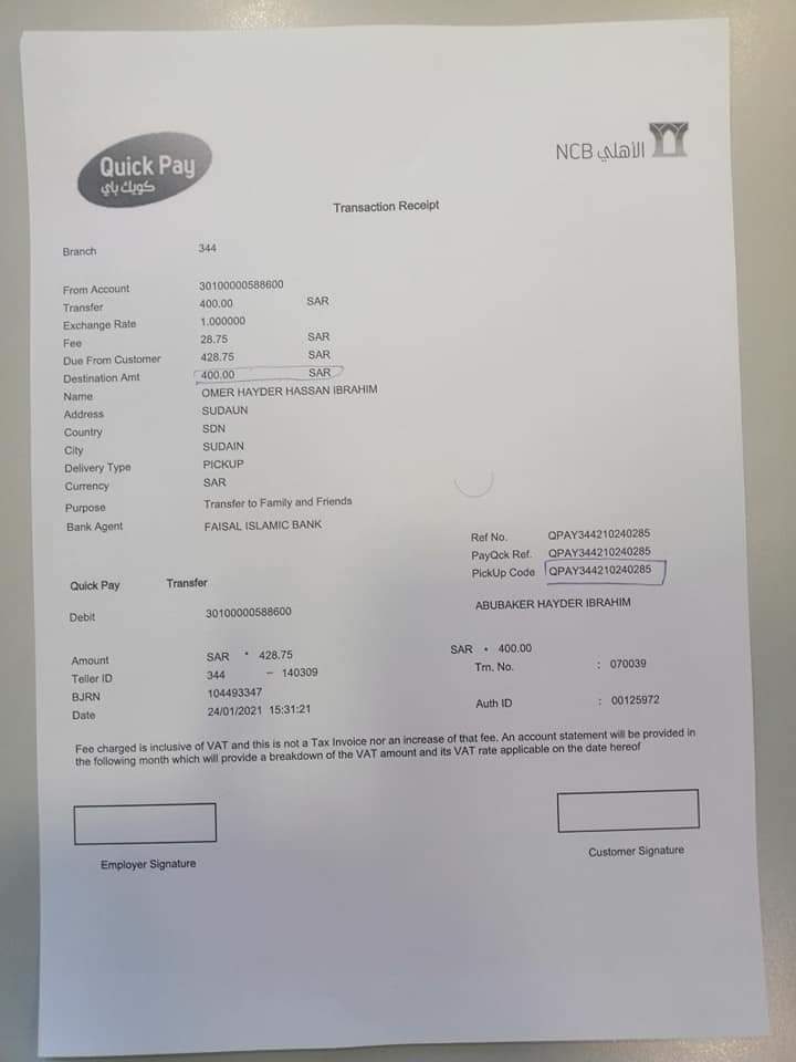 تمام ولو عندك حساب في البنك الاهلي من تلفوناكم تخلي اهلك يستلموا ريال.