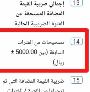 💠يعني الأخطاء التي تؤدي لزيادة أو نقصان الضريبة بحدود مبلغ ( 5000.00 ± ريال) أو أقل لا تحتاج أي إجراءات ويتم تصحيحها في الصف رقم 14 ضمن إقرار الفترة الضريبية اللاحقة