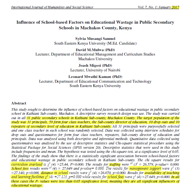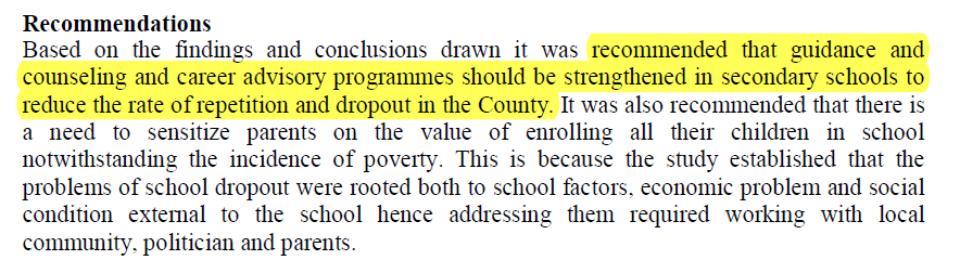 9⃣ دراسة Samuel et al. (2017)، هدفت لمعرفة "العوامل المدرسية" التي ادت الى #الفاقد_التعليمي #EducationalWastage باحدى المقاطعات التعليمية بكينيا، فكانت النتائج كالتالي: