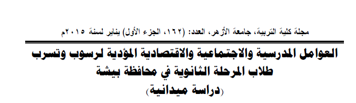5⃣ هدفت دراسة (الشهراني، 2015) للتعرف على العوامل المدرسية والاجتماعية والاقتصادية المؤدية إلى رسوب وتسرب طلاب المرحلة الثانوية ...