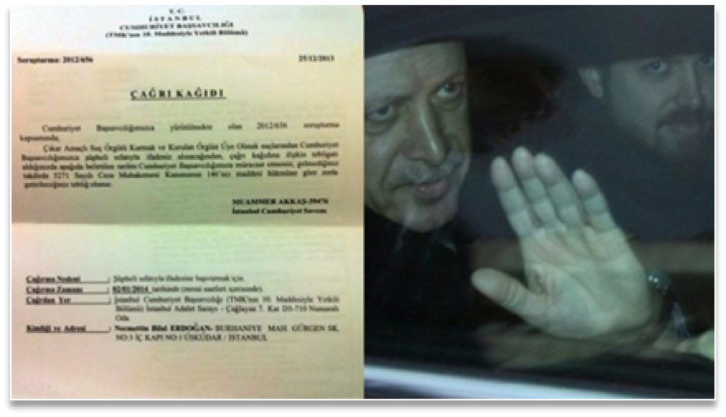 تشير ملاحظات الشرطة إلى أن اردوغان طلب منع المدعي العام من ملاحقة ابنه بلال أردوغان بعد تورطة في قضيه رضا ضراب