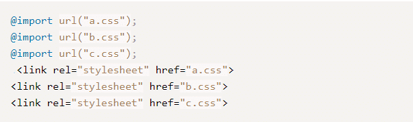 الحل باستخدام سلاسل من الروابط إلى ملفات CSS المطلوبة باستخدام وسم <link>، والمتصفح يقوم بجلب هذه الروابط معاً على التوازي دفعة واحدة.
