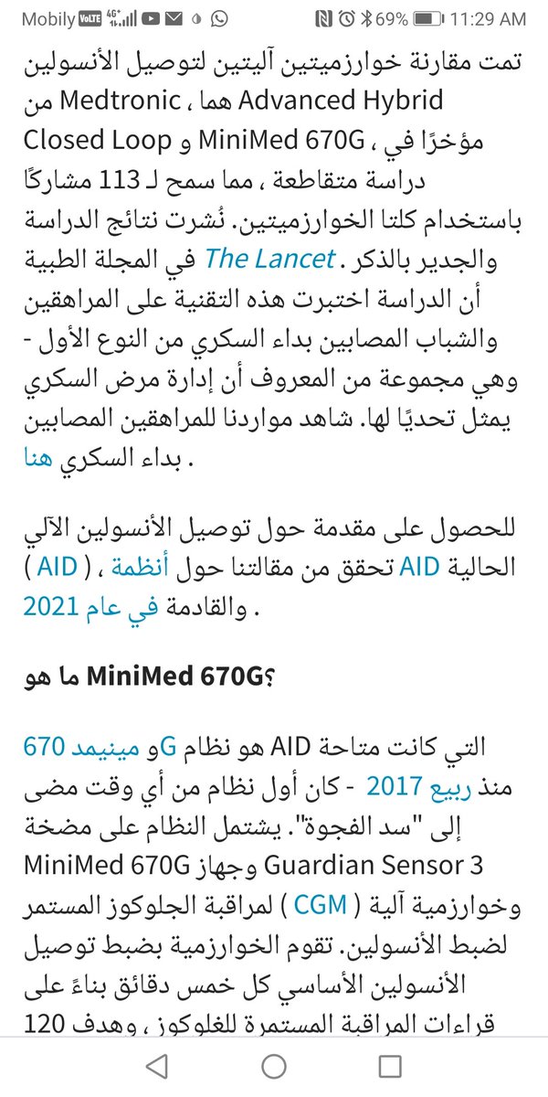 دراسة تقارن خوارزميات مضخة ميدترونيك ٦٧٠ في مقابل مضخة ميدترونيك ٧٨٠