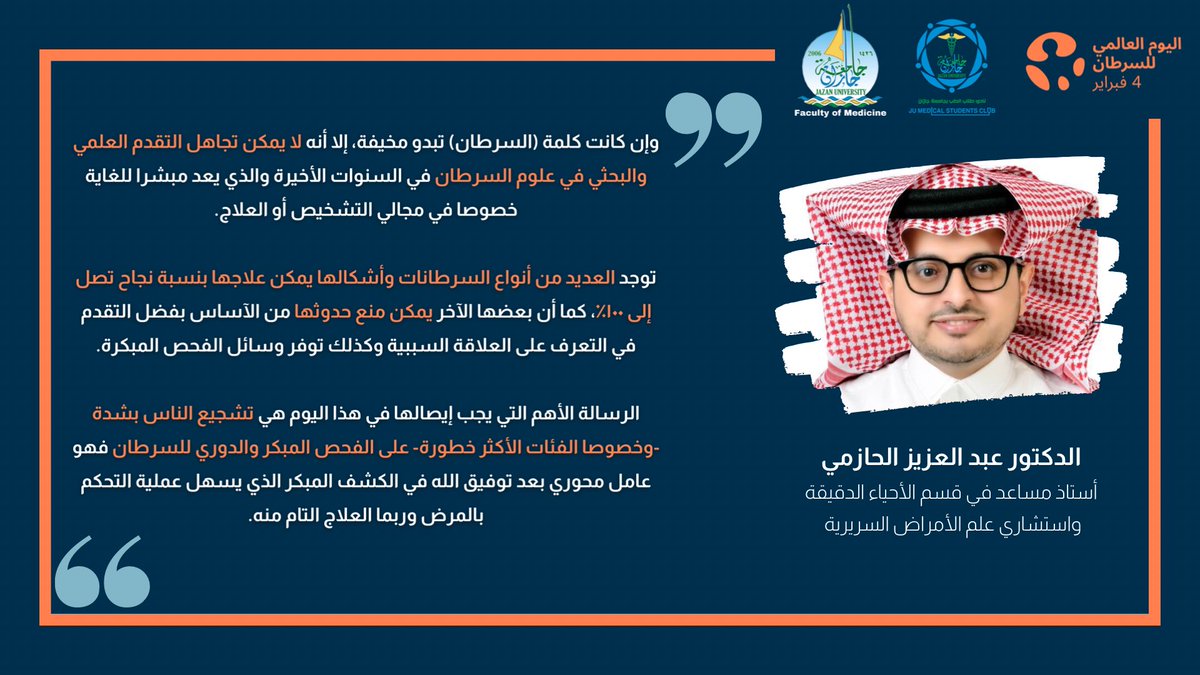 ✨✨✨ نختتم ثريد اليوم العالمي للتوعية بمرض السرطان بمشاركة للدكتور عبدالعزيز الحازمي أستاذ مساعد في قسم الأحياء الدقيقة واستشاري علم الأمراض السريرية .