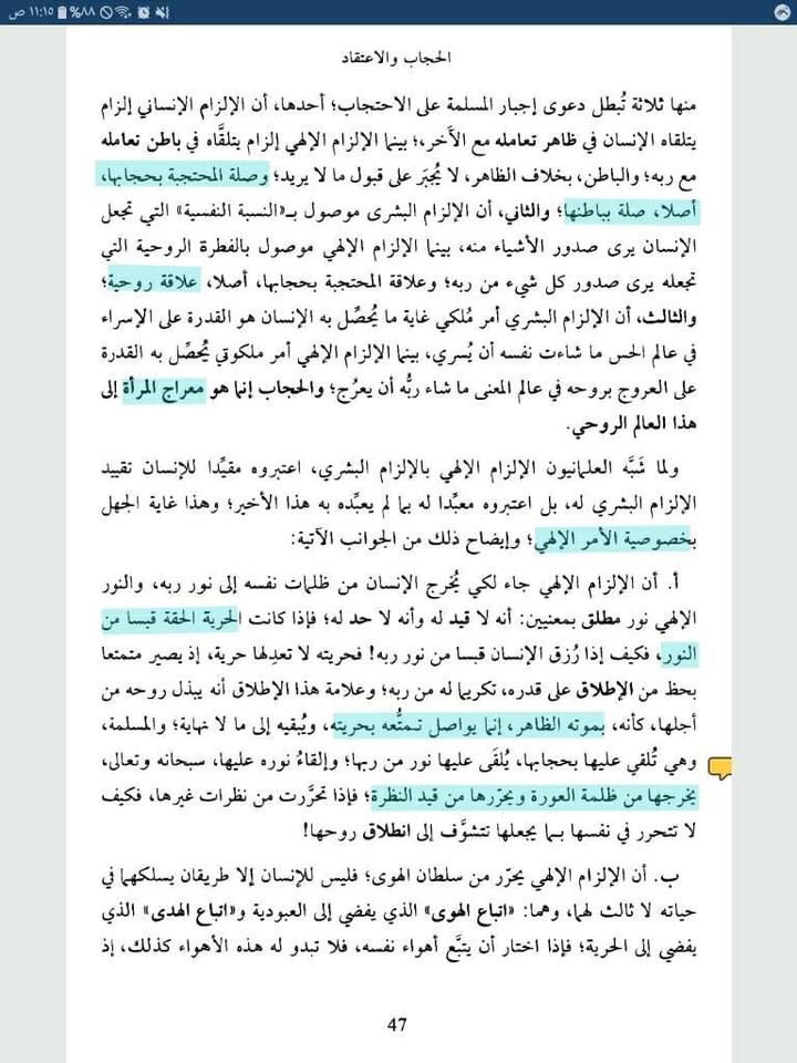 الإشكالية التي يواجه هؤلاء عدم استيعاب قيمة جسد المرأة، واللذة والنشوة والشهوة بين الجنسين، وأن الحجاب قيمة روحية والتبرج انحدار أخلاقي.