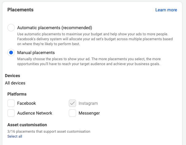 قبل أن نبدأ الشرح، أرجو أن تعتمد على مدير أعمال فيسبوك في إطلاق حملاتك الاعلانية بعد ذلك، وليس من داخل تطبيق أنستجرام؛ لأننا نريد تنفيذ حملات احترافيّة وليست مُجرّد ابتدائيّة.