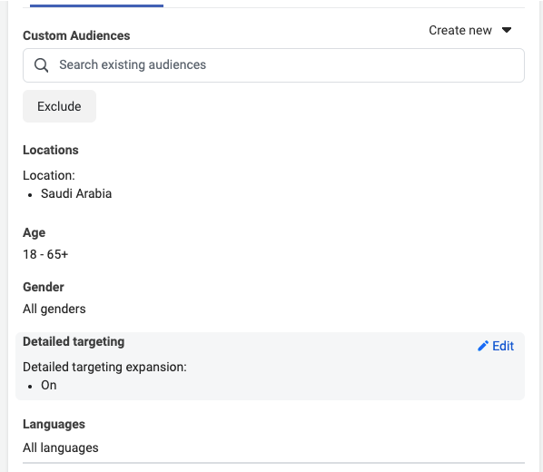 بعد ذلك نقوم بتحديد العمر والجنس المستهدف، وهي بيانات يجب أن تكون مُسلّمات بالنسبة لك.