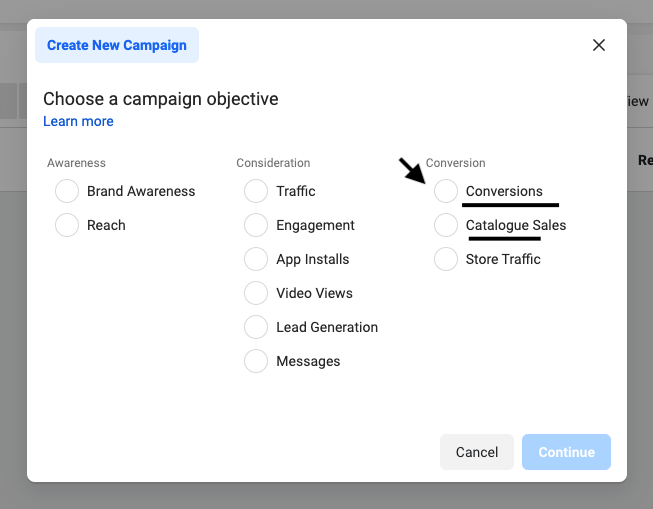 سأختار نوع حملتي Conversions وأضغط على التالي.