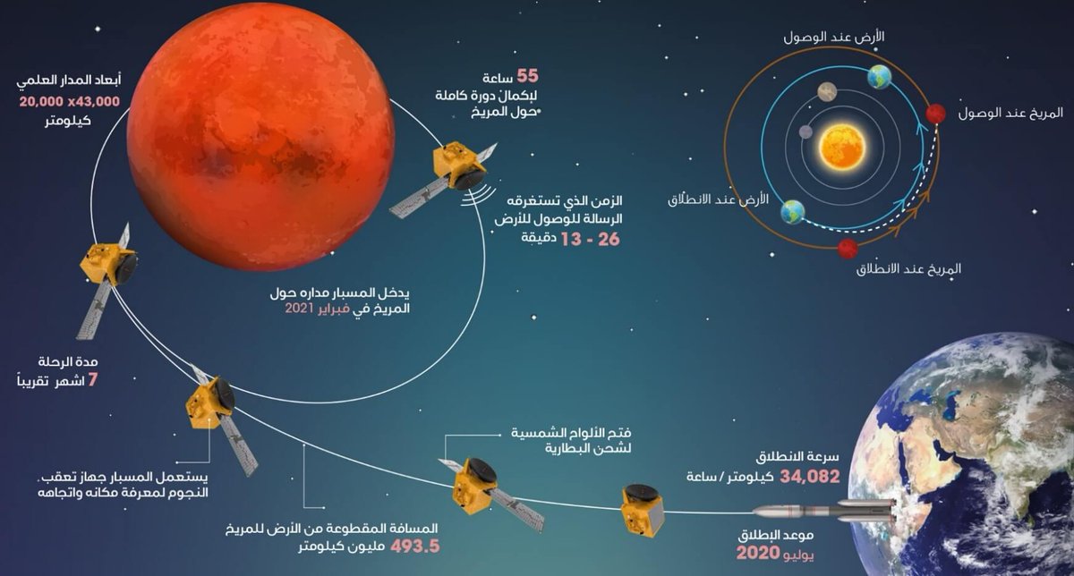 انطلق المسبار في مهمته بتاريخ 20 يوليو 2020، ومن المخطط أن يصل إلى المريخ بحلول عام 2021، تزامناً مع ذكرى مرور خمسين عاماً على قيام اتحاد دولة الإمارات العربية المتحدة. ويجري التخطيط والإدارة والتنفيذ