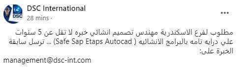 مطلوب ع وجهه السرعه لشركه مقاولات بمدينه نصر