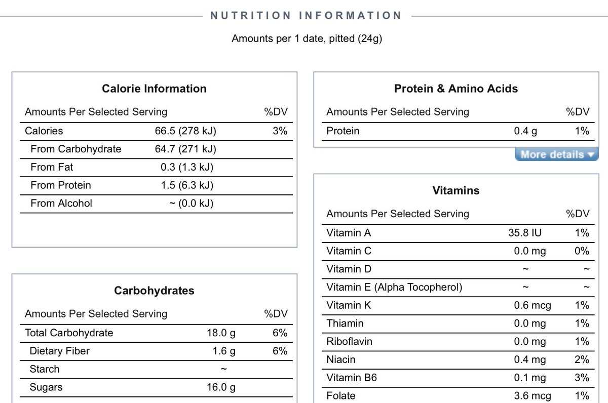 يحتوي 100جرام من التمر على العناصر الغذائية التالية: