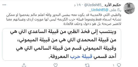تغريدتك اعتراف بأن الرجل يسكن وادي حلي ولديه رواية أنه حربي ولكنه لا يملك تفاصيل.