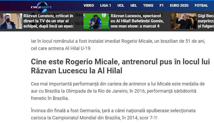 🔵🔵 صحيفة "ديجي سبورت" الرومانية تتحدث عن مدرب #الهلال الجديد روجيرو ميكالي: "إنه المدرب الذي قاد نيمار إلى الميدالية الذهبية في أولمبياد 2016. خبرته وإنجازاته السابقة كانت مع منتخبات الناشئين وايست مع الفرق، سيقود الهلال خلال الفترة المقبلة بعد إقالة رازفان لوشيسكو".