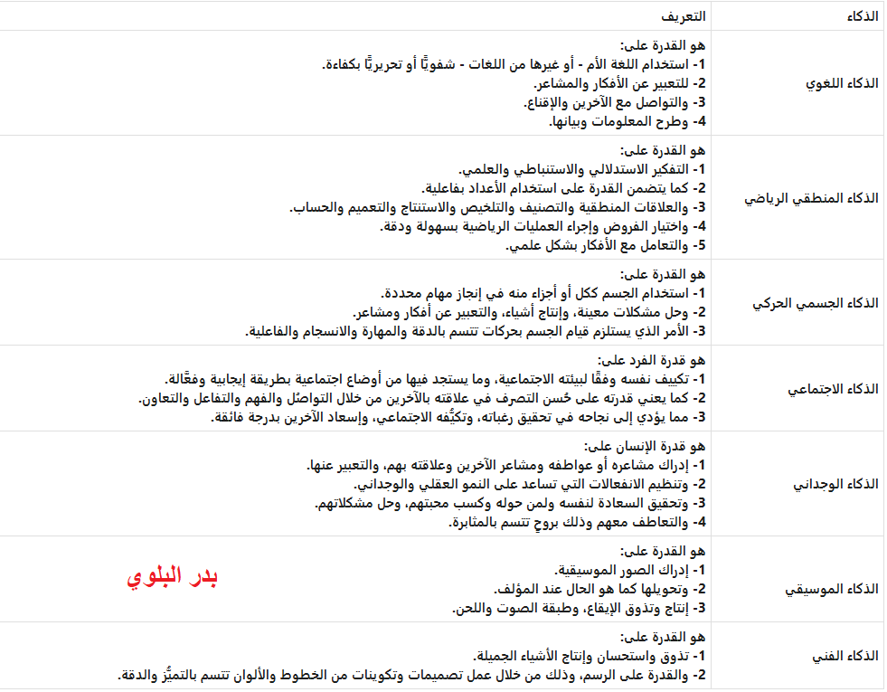-أنواع الذكاء وتعريفه
