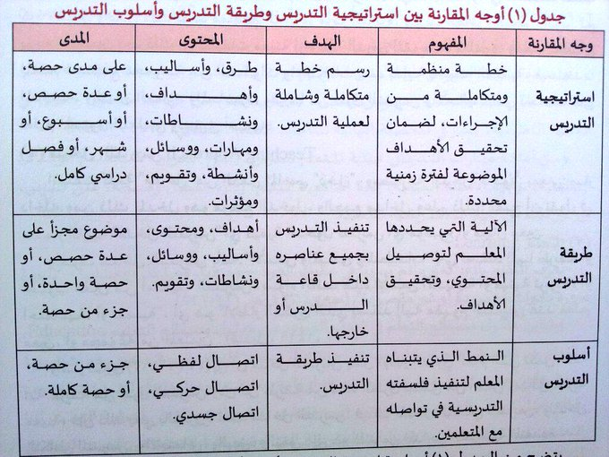 -المقارنة بين استراتيجية التدريس / طريقة التدريس / أسلوب التدريس