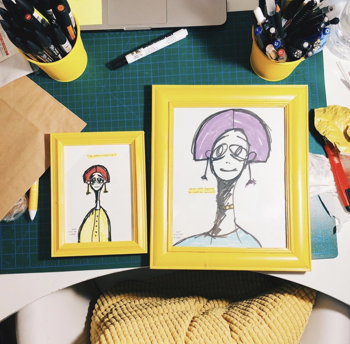 لمّا قررت أشتغل على مربوط، وما أصير موظفة تحت مسمى مصممة جرافيك، بهالقرار أنا صرت مصممة جرافيك، وكاتبة محتوى، ومديرة حسابات السوشال ميديا، خدمة عملاء، والمسؤولة عن تجهيز الطلبات، ابتكار منتجات جديدة، ومُسوقّة برضو.