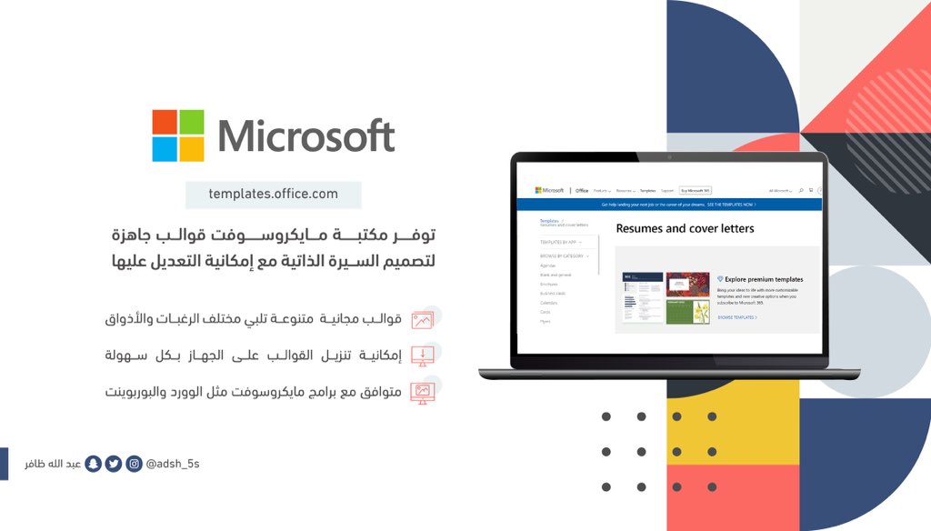 مكتبة مايكروسفت لقوالب جاهزة لسير ذاتية المتاحة للاستخدام وإمكانية التعديل عليها، ميزتها متوافقة مع برامج مايكروسفت مثل الورد والبوربوينت وغيرها