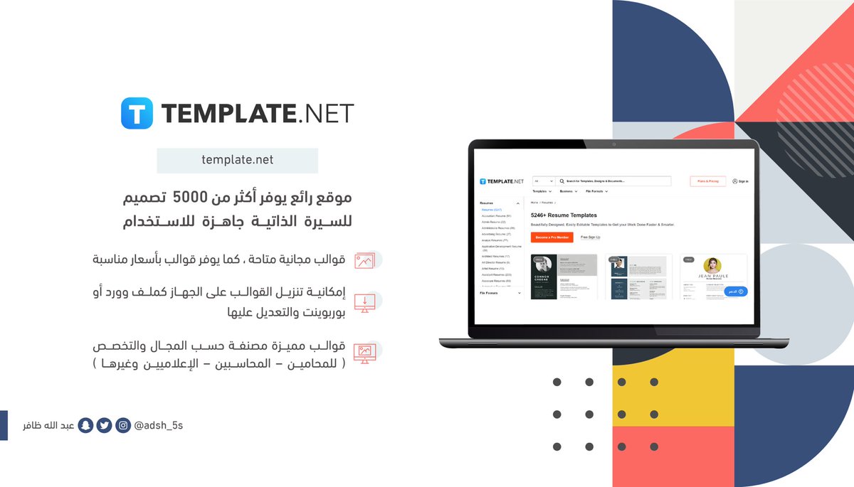 اكثر من 5000 تصميم سيرة ذاتية جاهزة للاستخدام ، ممكن تنزيلها بنسخ وورد او بوربوينت وتعديلها من خلال الجهاز الشخصي