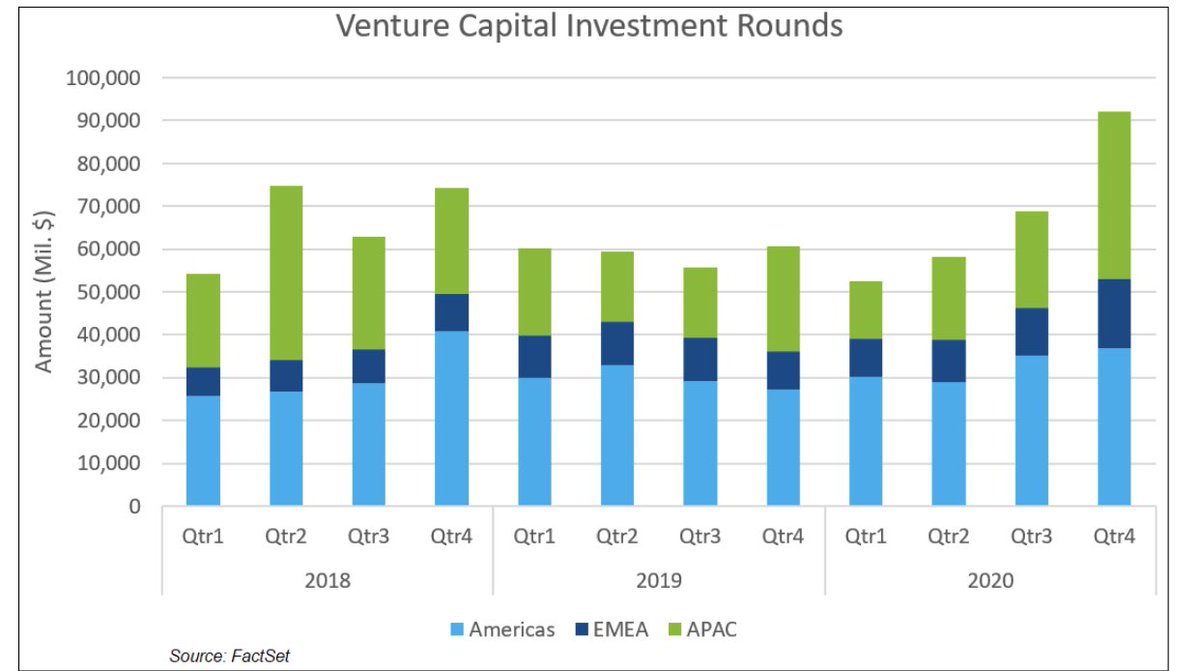 على الرغم من توقف إبرام الصفقات بسبب تأثير فايروس كورونا في النصف الأول من عام 2020 ، قفز تمويل #رأس_المال_الجرئ (#Venture_capital) إلى مستوى قياسي في الربع الرابع.