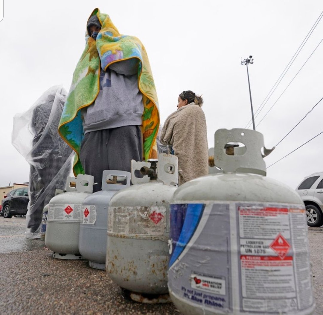 نتيجة تجمد توربينات الرياح وألواح الطاقة الشمسيةتوقف إمدادات المياة والكهرباء والغذاء والدواء والعلاج بالمستشفيات😳🧐🤔👇🏻