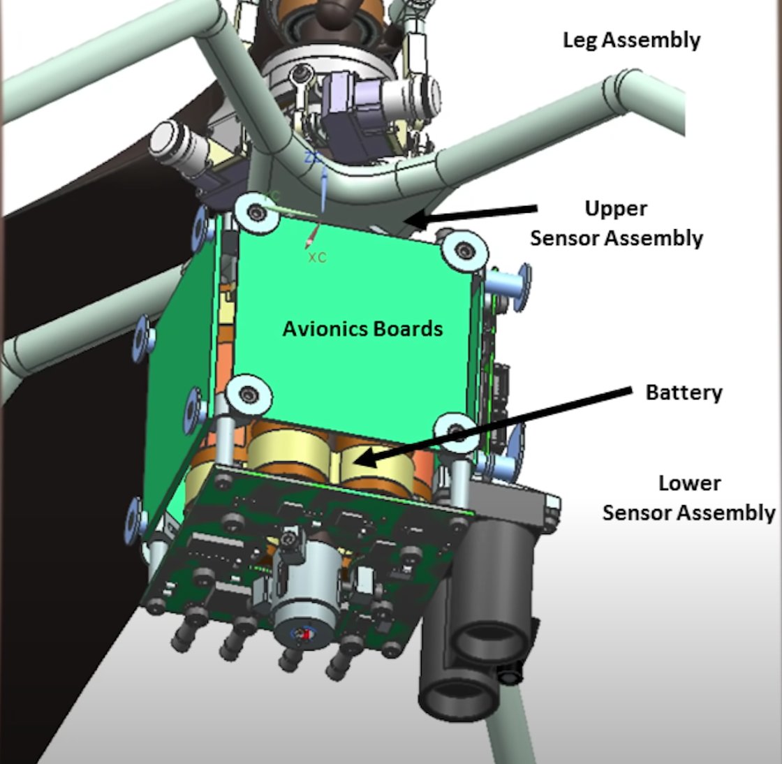 جسم المروحية يتكون من (لوحة شمسية في الأعلى و الهوائيات للاتصالات) , (نظام الدوران مع الشفرات), (مكعب يسمى (fuselage) يحتوي على بطاريات ولوحات الكترونية للحساسات والكمرات), (ارجل تقف عليها المروحية). #Mars2020 #Perseverance
