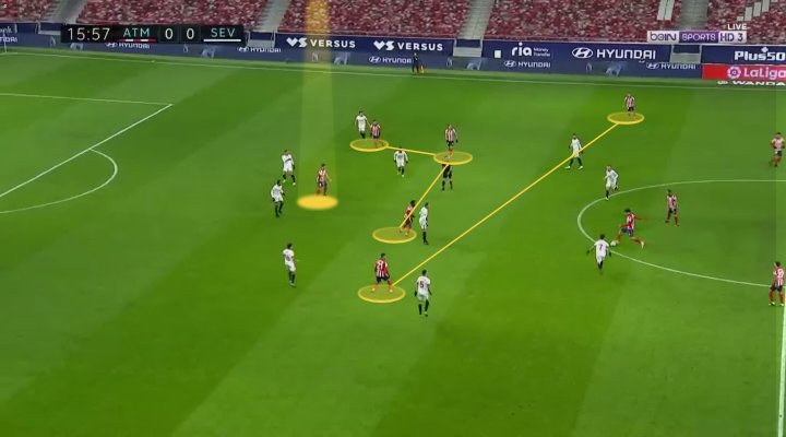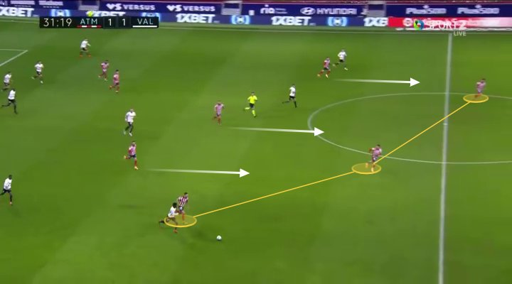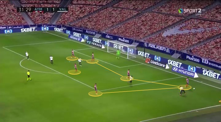 وقد أدى ذلك إلى امتلاك أتلتيكو للاستحواذ على الكرة ولعب المزيد من التمريرات في نصف الخصم أكثر مما رأيناه منهم في الماضي.