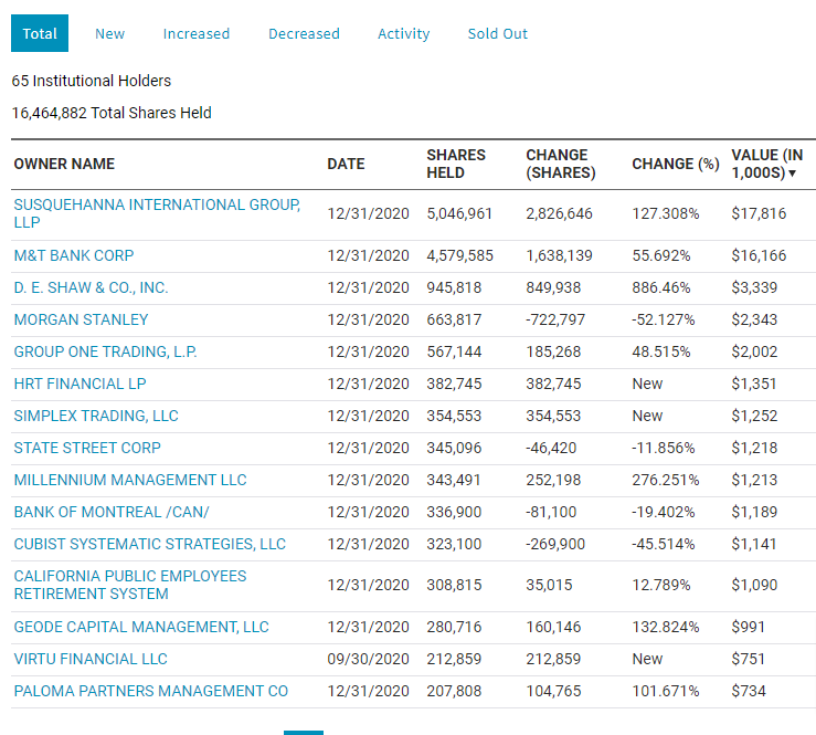 من اهم الامور الايجابية ان العديد من المؤسسات زادت من حصصها في تاريخ 12 فبراير وهم كما في الجدول التالي :