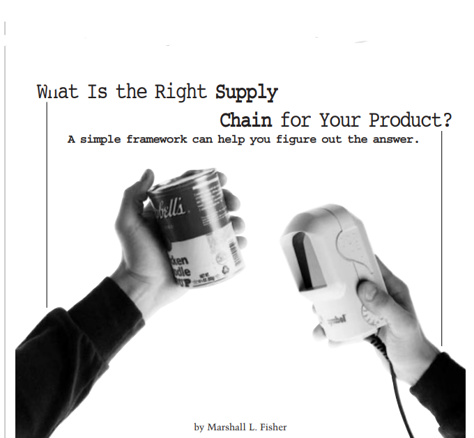 مارشال فيشر ، قسّم المنتجات إلى فئتين ، منتجات وظيفية ومبتكرة وقال إن كل منتج له خصائص مختلفة فالمنتجات الوظيفية التي يكون عليها طلب ثابت وربح أقل والمنتجات الابتكارية لها طلب متقلب ولكن هامش ربح أعلى.