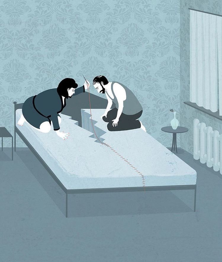 ١- الزوج متعود يفطر بدري قبل الشغل و الزوجة متعودة تنام و تفطر لما تصحى ، فتلاقي الزوج بسبب توقعاته عن الزواج و ان بقا زوجته هتقوم تجهزله الفطار فيلاقي عكس كدا بيحصل و افكاره تقوله ان زوجته مش بتقوم بواجباتها فتحصل مشاكل