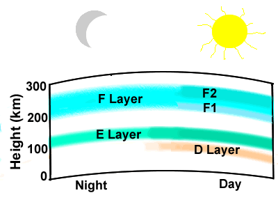 لو صممنا نظام اتصال بالأقمار الاصطناعية لن يكون بالإمكان أن نستخدم ترددات راديوية متدنية و سنكون بحاجة إلى ترددات عالية رغم أننا سنعاني أنها ستتوهن أسرع مع المسافة بوجود الهواء فسنحتاج إلى (بور) أكبر. أيضا تحدث في الطبقة الأيونية ظاهرة Faraday effect تؤثر على الاستقطاب.