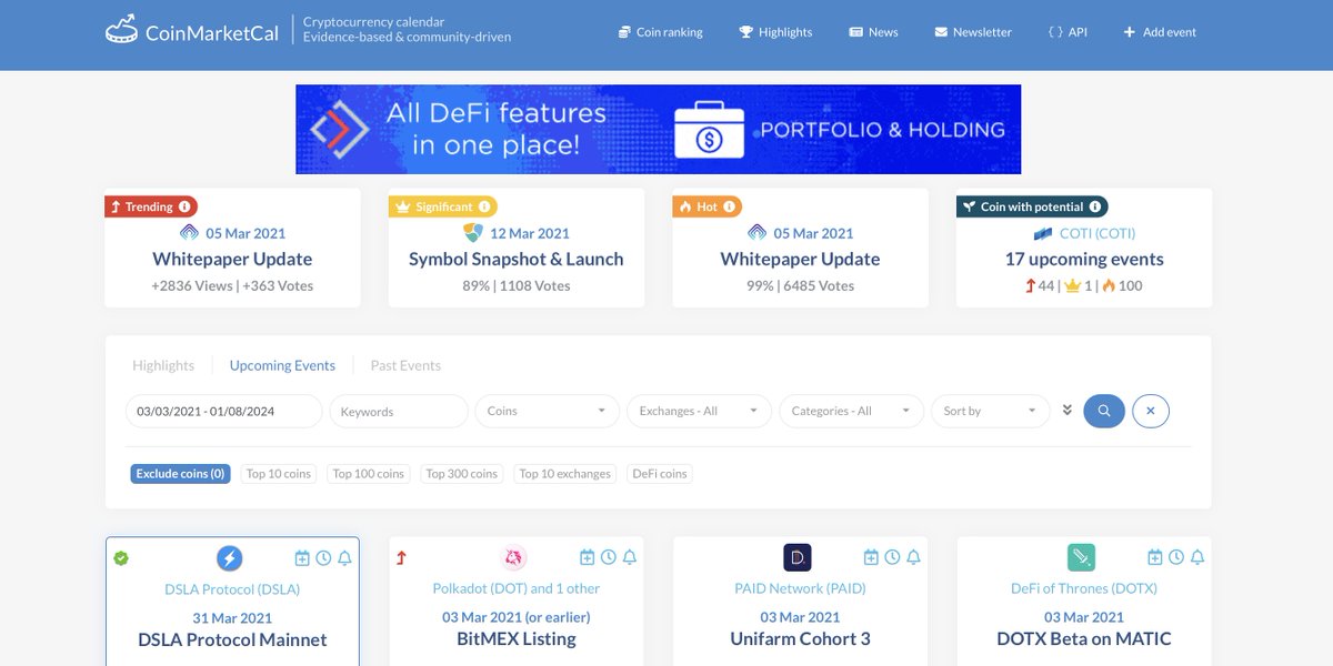 CoinMarketCal is the leading economic calendar for cryptoassets (coins, tokens and NFTs). We cover a...