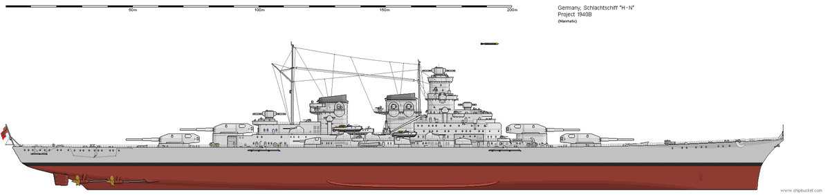 سفينة حربية ألمانية سرعتها 55 كيلومتر بالساعة و مداها 37 ألف كيلومتر و مسلحة بـ 8 مدافع رئيسية من عيار 508 ملم و 12 من عيار 150 ملم و 16 من عيار 105 ملم و 28 من عيار 37 ملم و 40 من عيار 20 ملم و 6 أنابيب طوربيدات عيار 533 ملم