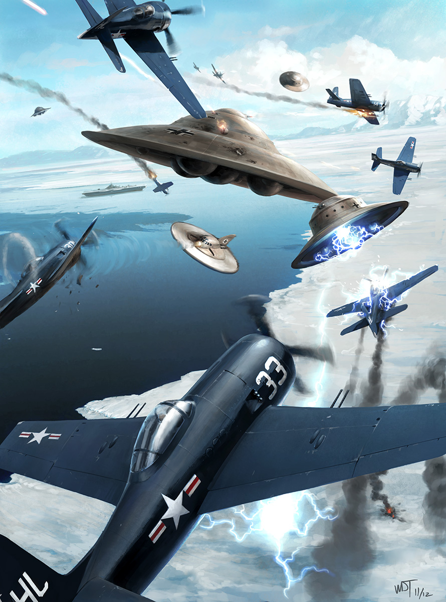 (ادعاء) : بناء الألمان لقاعدة سرية في القطب الجنوبي و أن هتلر و قادته لم يموتوا بل انسحبوا الى هذه القاعدة و يعدوا جيشهم من هناك للعودة بقوة و تأسيس الرايخ الرابع الذي سيحكم العالم