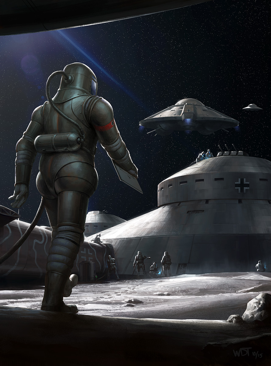 (ادعاء) : وصول الألمان للقمر و اقامة قاعدة هناك و صناعة اسلحة يمكنها قصف الأرض كانت هذه ابرز الادعاءات التي اطلعت عليها و انتشرت في فترة الحرب و ما بعدها و يتضح حجم المبالغة بقوة الألمان لادعاء بطولة زائفة و القول بأن أمريكا و الحلفاء قد انقذوا البشرية من خطر الابادة