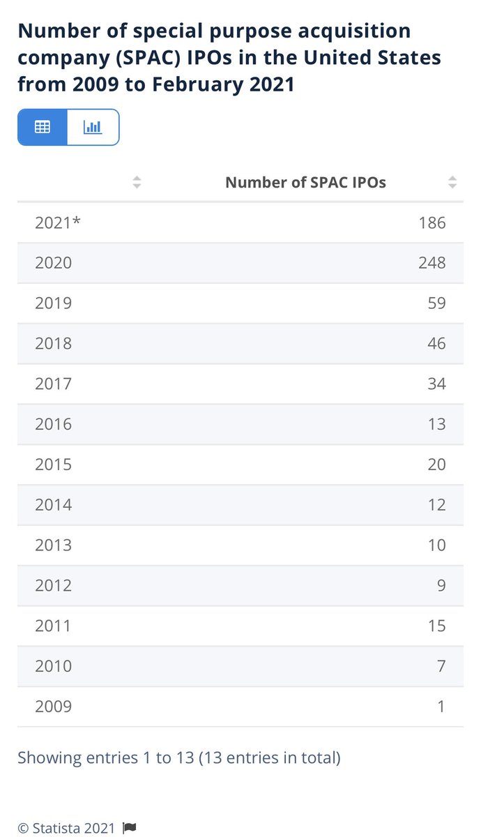 التدفق النقدي لل"SPACs" بالسنوات الماضية يشهد تصاعد كبير وهذه قيمة رؤوس الاموال (إستثمارات) الي تم جمعها من الاكتتابات: