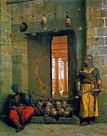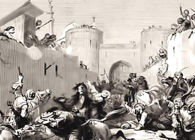 13-ولم يكد هؤلاء الجنود يصلون إلى الباب حتى ارتج الباب الكبير وأقفل من الخارج في وجه المماليك والحراس الذين كانوا يعطون ظهورهم للمماليك استداروا لهم وانطلقت رصاصة في السماء ولم ينتبه المماليك إلا بعد فوات الأوان ! فقد كانت هذه هي الإشارة لبدء مذبحة لن ينساها التاريخ يوماً 👇