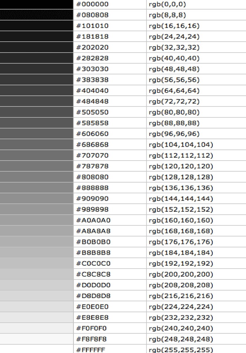 الغريب نوعا ما ان الظلال عبارة عن عناصر RGB متساوية تظهر بالنظام بهذي الطريقة 25,25,25 او 100,100,100 هذا ظل لكن تعتمد على عناصر RGB بشكل اساسي لتوليد الظل