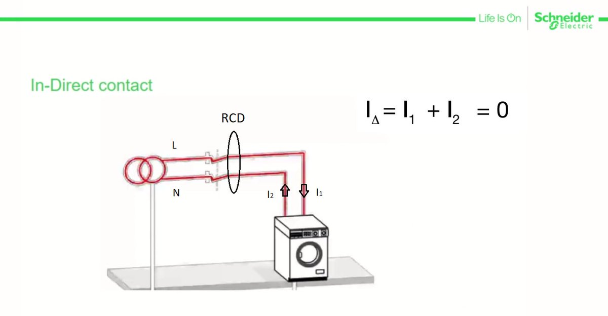 @electrical88 وهنا سيكون هناك مسارين لعودة التيار إلى المصدر I2 + I3 وبالتالي وجود اختلاف في قيم التيارات المارة بالقاطع RCD مما سيؤدي إلى فصله بعد حدوث الصعق الكهربائي
