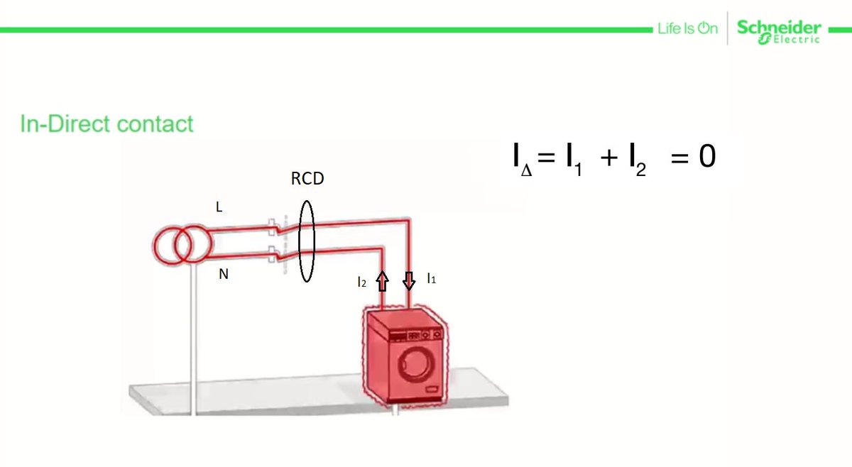 وبالتالي ستكون التيارات المارة على القاطع غير متساوية وبالتالي يقوم القاطع RCD بفصل الدائرة فوراً
