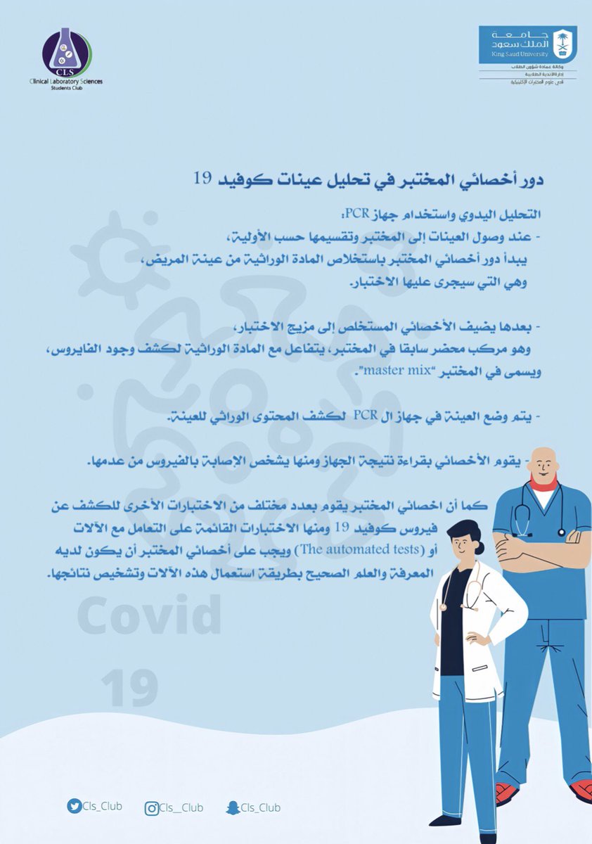 نوّجه تحية كبيرة لـ #أخصائي_المختبر 🔬ونشكره على جهوده الجبّاره في ظل هذه الجائحة، سائلين المولى عز وجل أن يحمينا وإياكم شر الوباء و أن يرفع عنا هذا البلاء.
